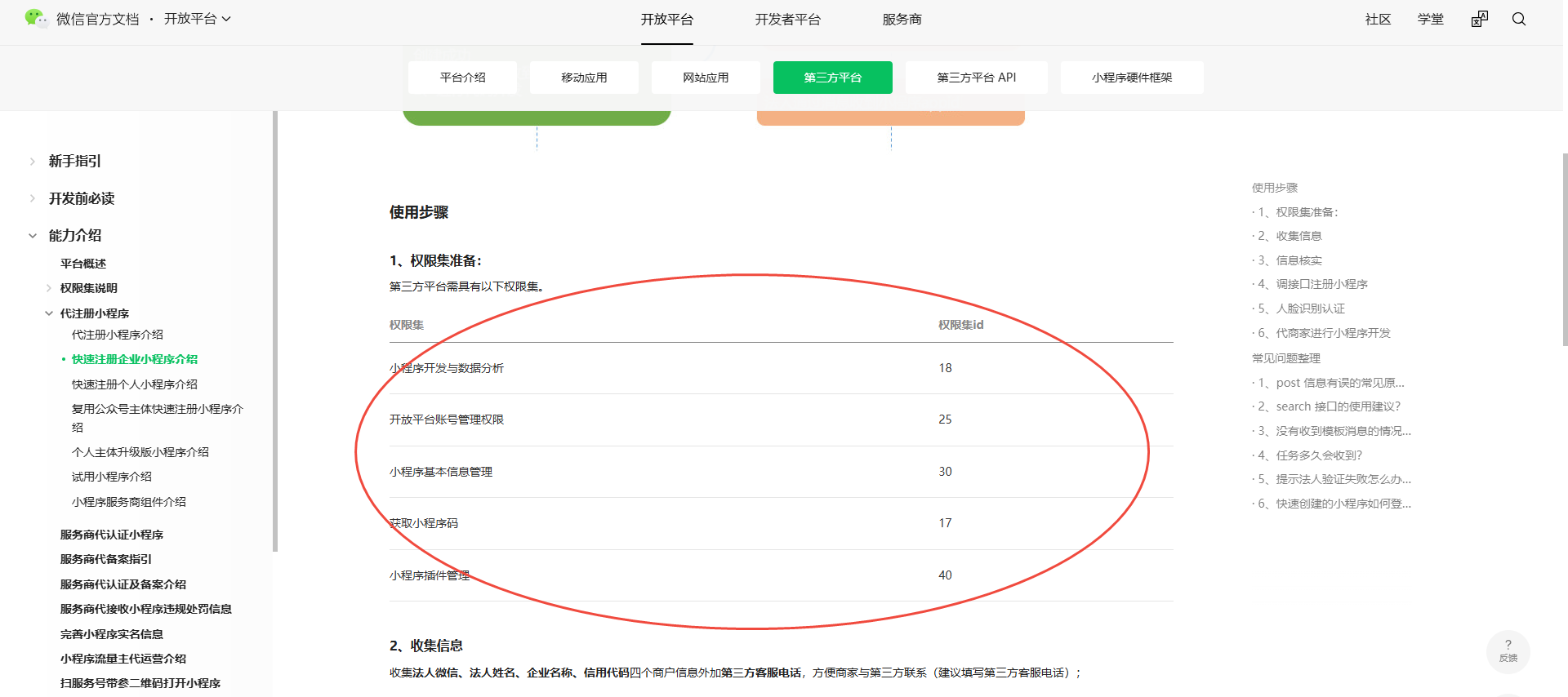 你好,请参考文档https://developers.weixin.qq.com/doc/oplatform/Third-party_Platforms/2.0/product/Register_Mini_Programs/Fast_Registration_Interface_document.html检查下第三方平台是否勾选一下5个权限集且是否全网发布生效