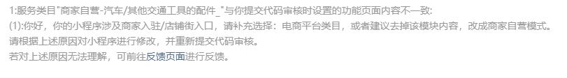 你好,经核实,你的小程序仍含入驻页面,建议自查代码,确保包括前端展示、小程序代码等整体均移除:相关内容,再提交代码审核。(详图如下)