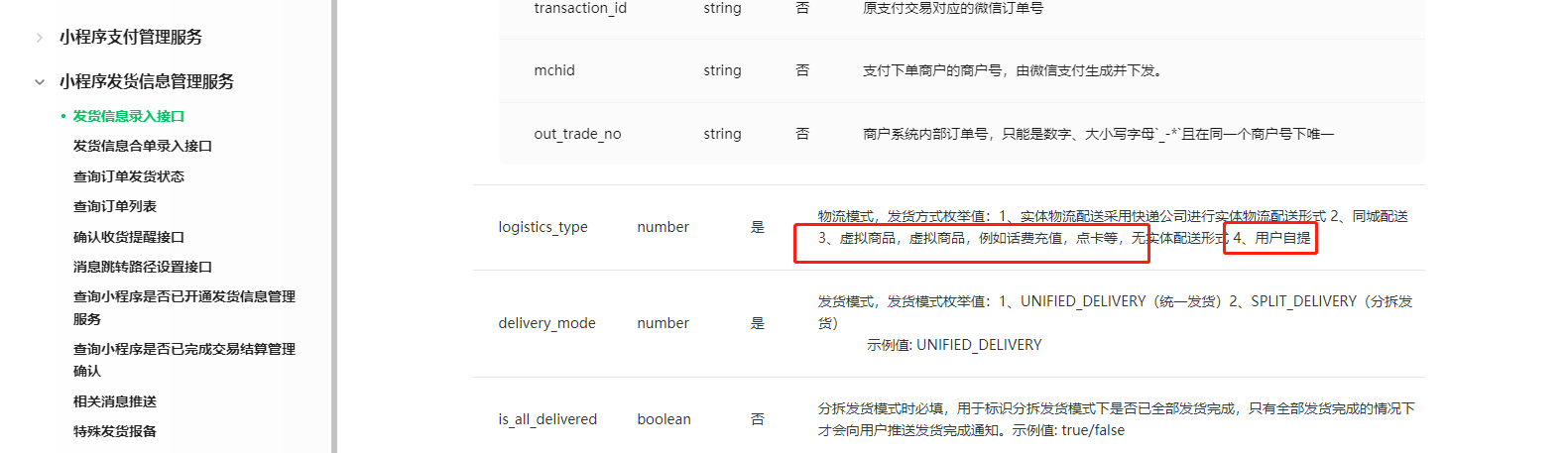 https://developers.weixin.qq.com/miniprogram/dev/platform-capabilities/business-capabilities/order-shipping/order-shipping.html#%E4%B8%80%E3%80%81%E5%8F%91%E8%B4%A7%E4%BF%A1%E6%81%AF%E5%BD%95%E5%85%A5%E6%8E%A5%E5%8F%A3