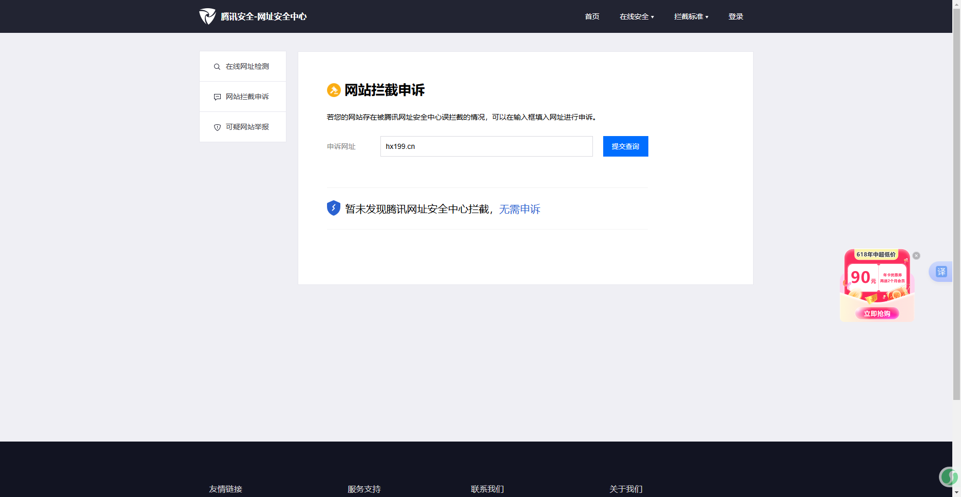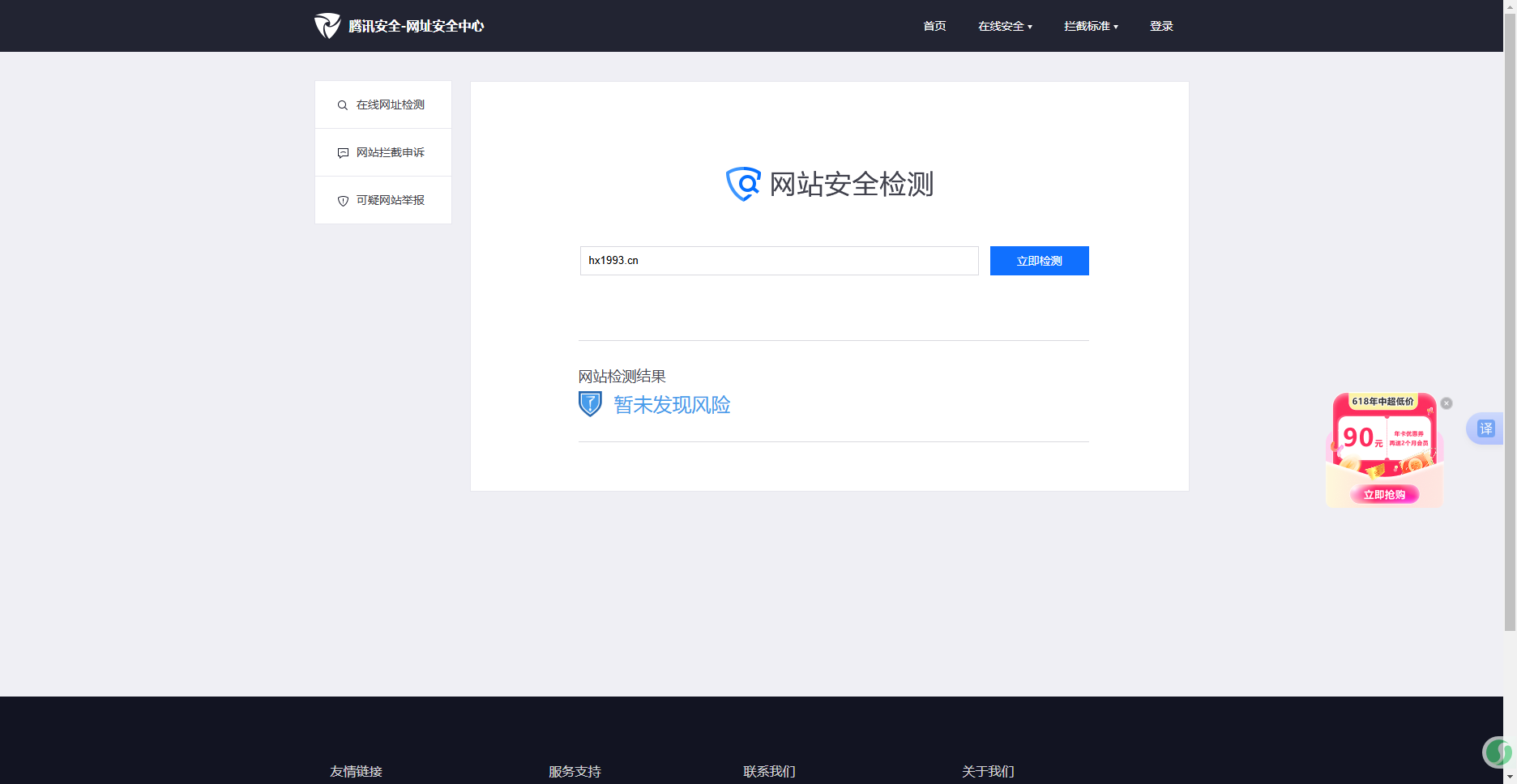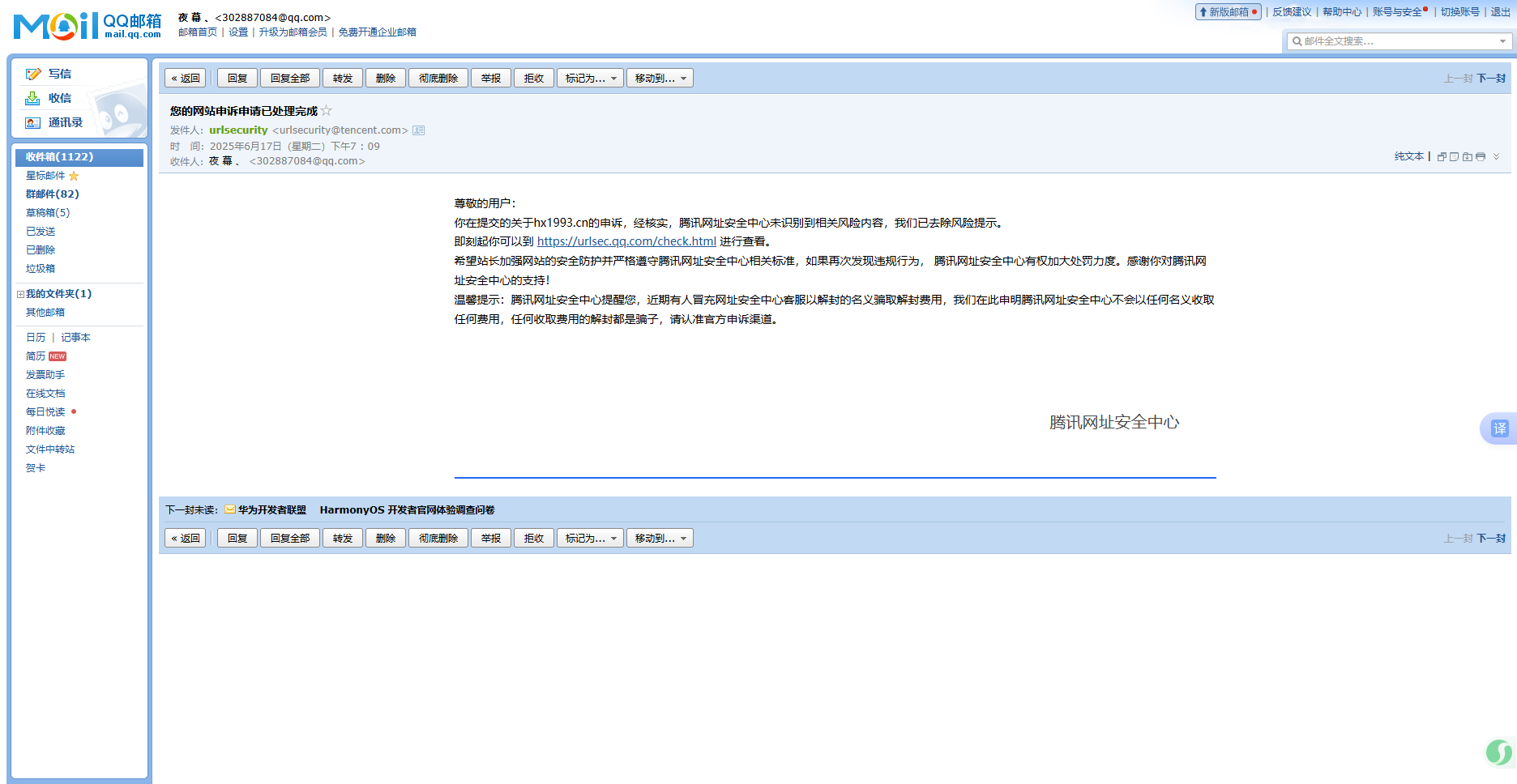 已咨询了(腾讯网址安全中心)回复网址正常。但是现在的原因浏览器访问正常,但是微信访问网站出现“网页存在安全风险,为维护绿色上网环境,已停止访问”,经检查网页里没有不安全的内容,请核实后帮忙解除拦截,谢谢!