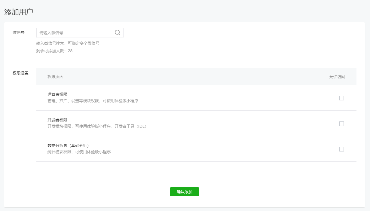 进入小程序后台-->成员管理-->项目成员-->添加(按需分配权限);