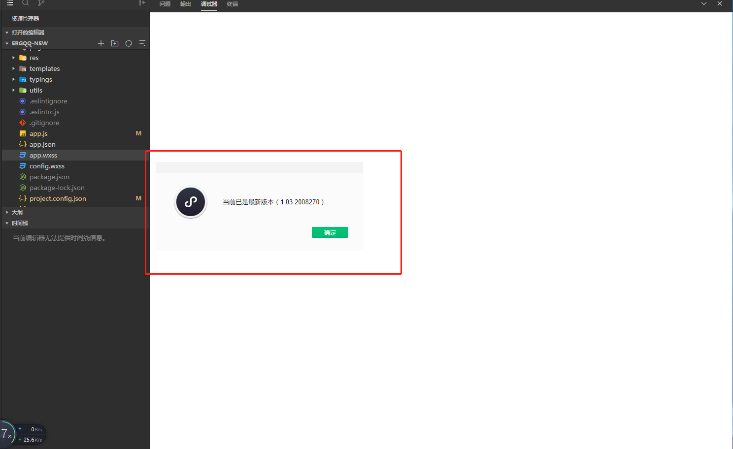 刚刚更新了最新版的开发工具,但是调试器那块始终都是白屏的,试过重启开发工具,也试过重启电脑,一样的表现。