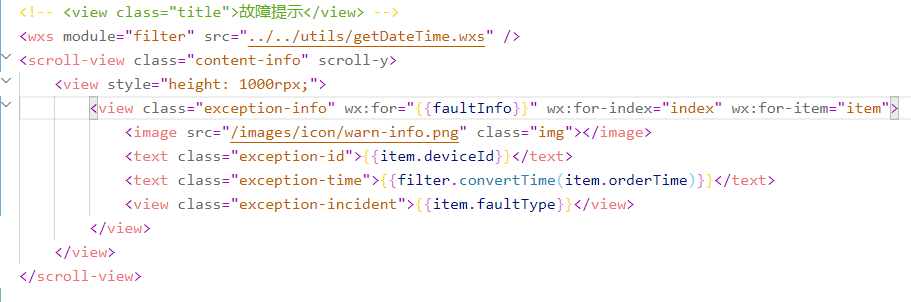 在 wxml 文件中调用了 wxs 中的方法将时间戳格式化,但是似乎并没生效而且也未报错。