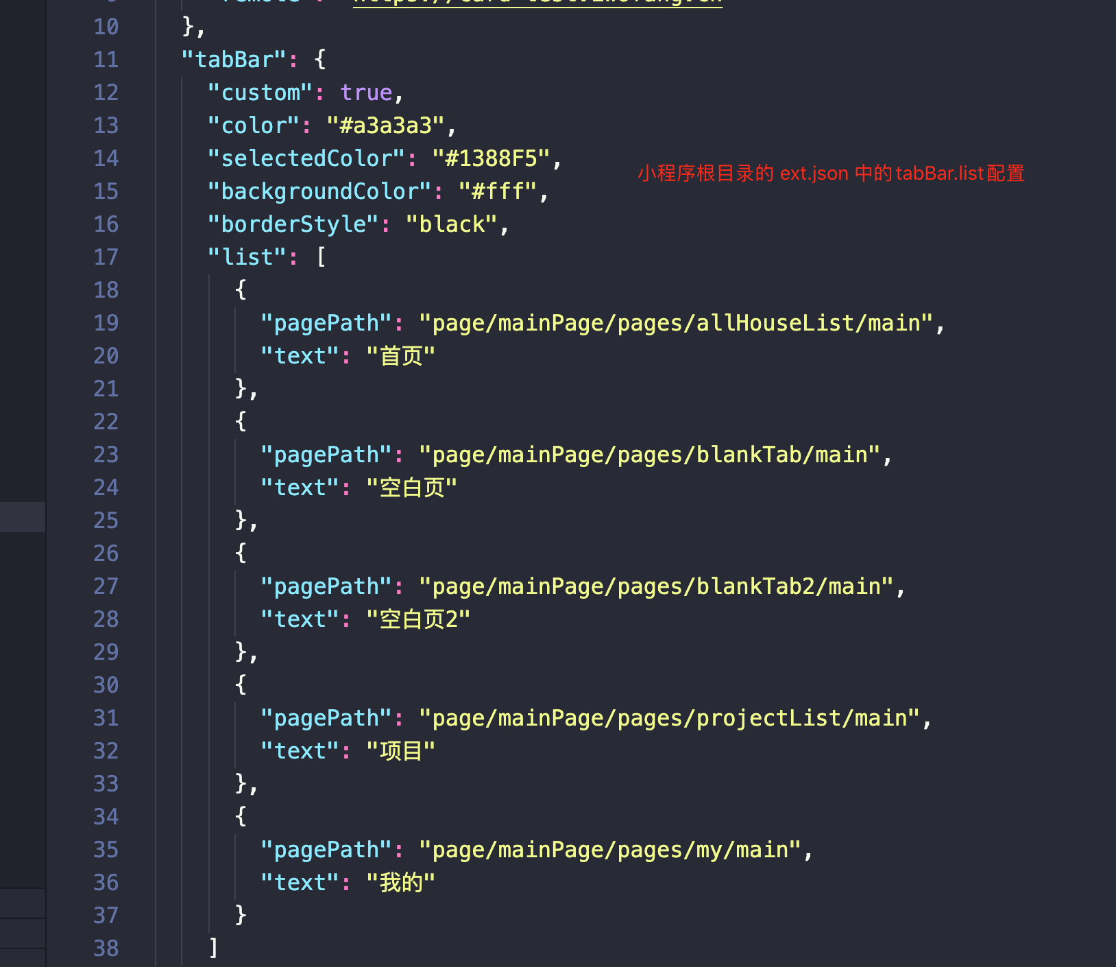 其中 ext.json 这个参数也配置 tabBar.list 选项