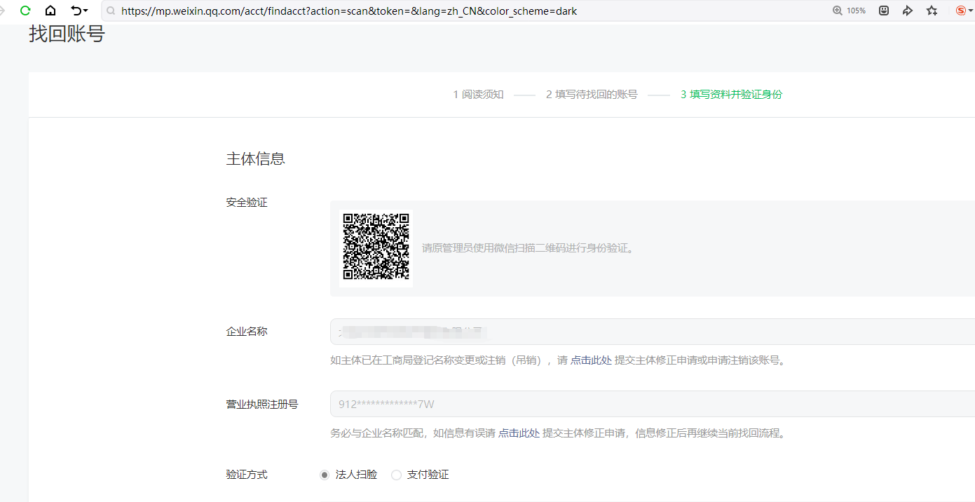 人工申诉之前弄过。但是没有回复。还有自助找回 ,不是需要原管理员扫码就是原法人扫码。这两种办法都不行。
