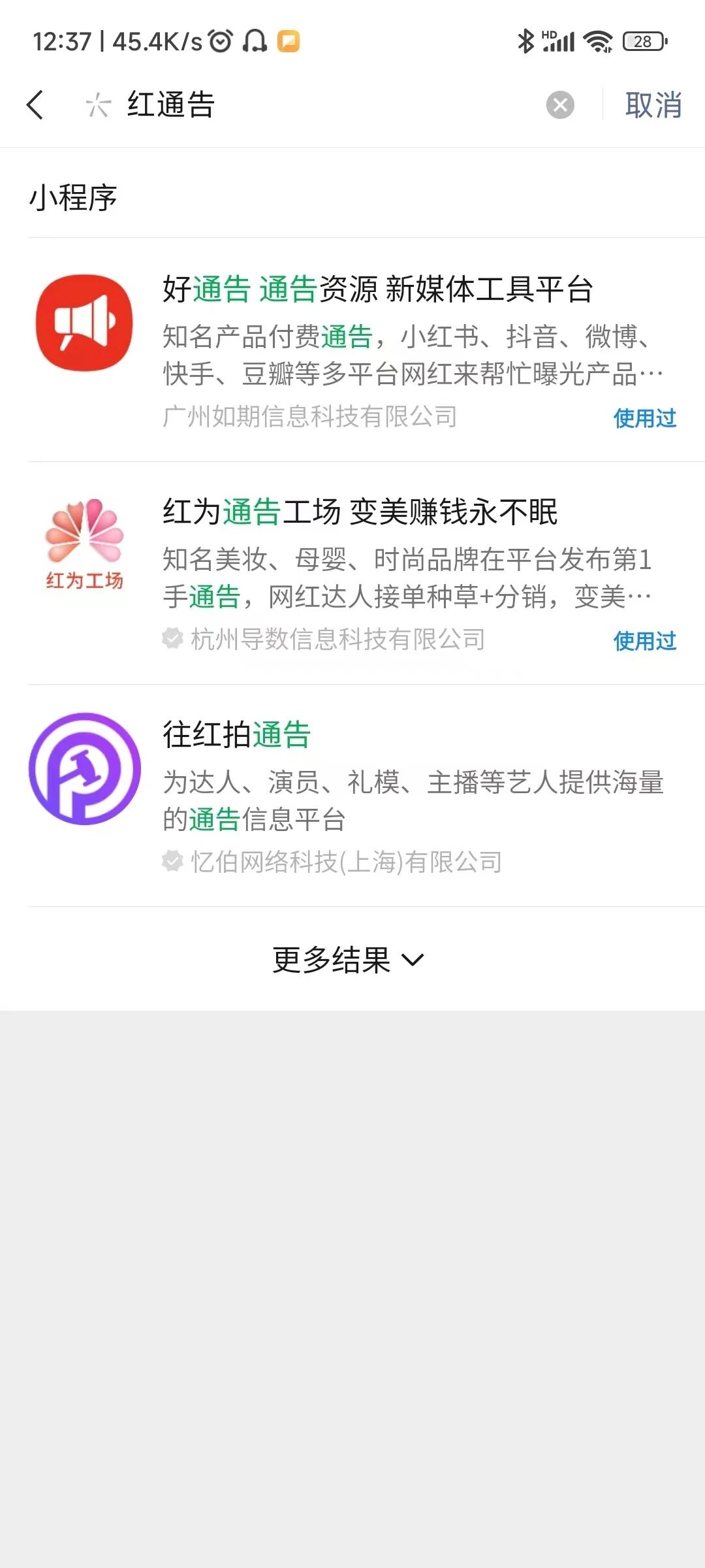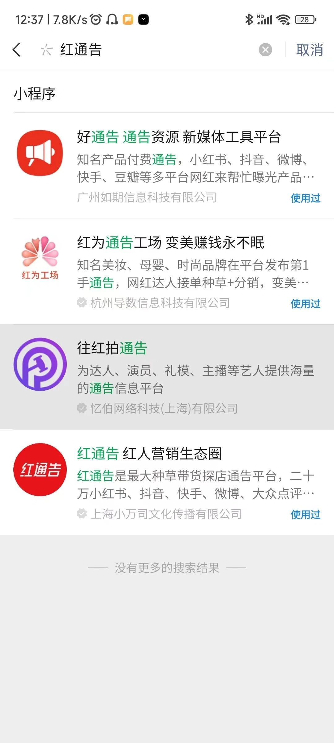 如果搜索全称“红通告 红人营销生态圈”,甚至无法搜索到