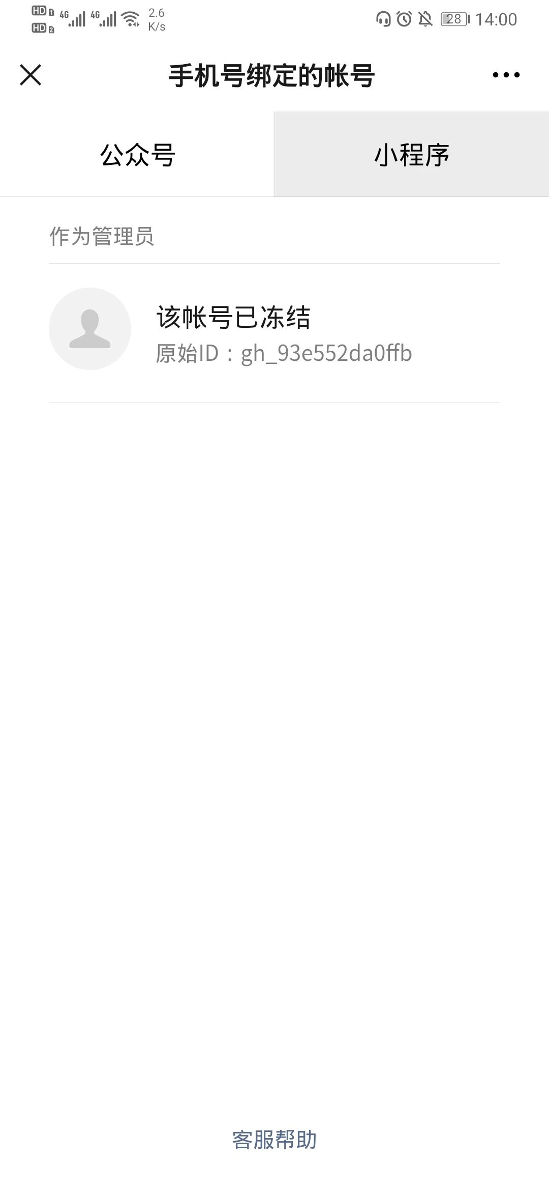 在公众平台安全助手查到自己的手机号、身份证和微信号绑定了一个小程序,小程序正在冻结。