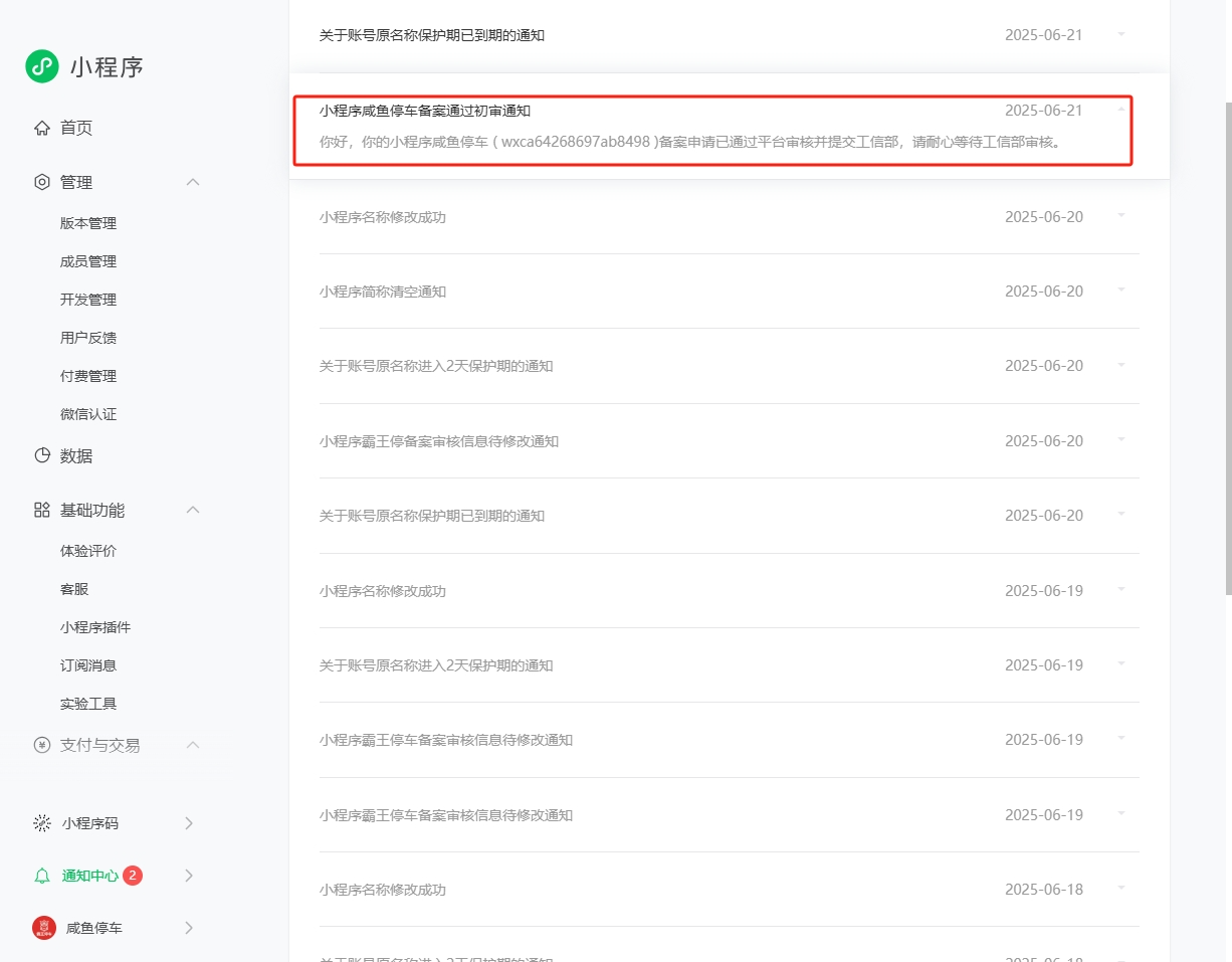 3、当前小程序APPID:wxca64268697ab8498 备案已通过管局审核。