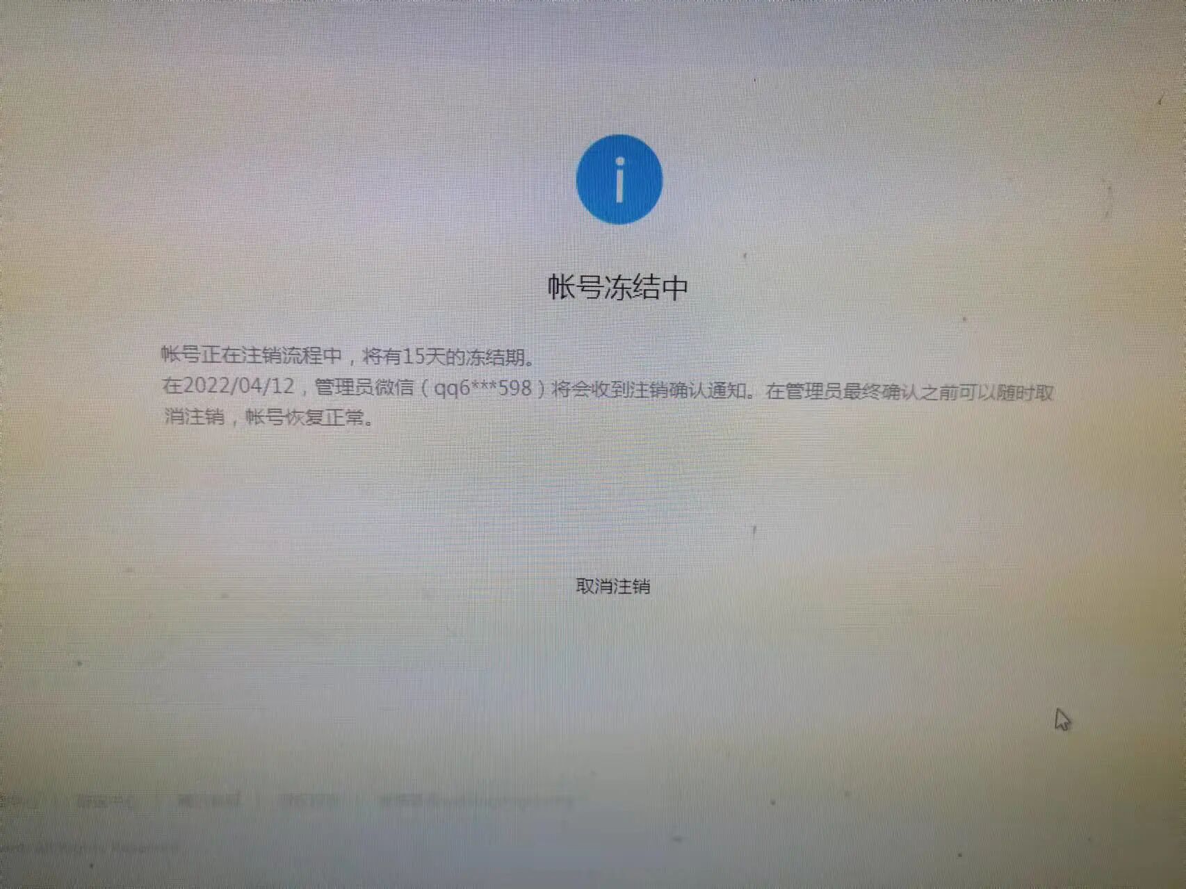 我们社区之前的公众号“馨园之家”上月底注销了,冻结期过了,之前的管理员没有收到注销的确认信息,我应该怎么办?