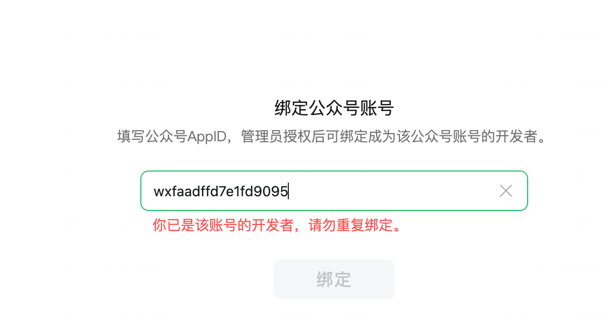开发控制台中服务号数量显示为0。但之前已操作过绑定appid,再次绑定也报错已绑定