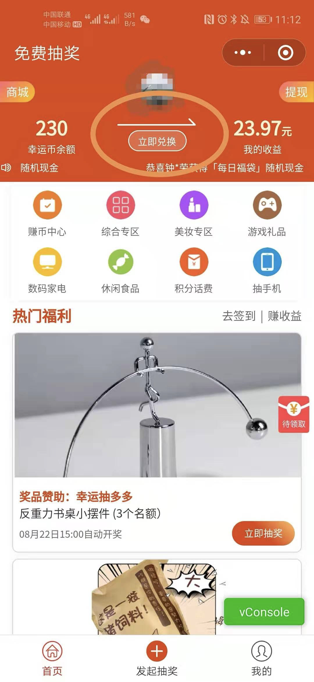 这个立即兑换不是指把幸运币兑换成右边的钱,是不是被这个箭头误导了呢。