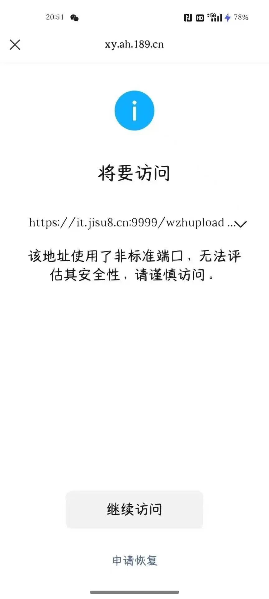 电信那边规定了接口端口必须是9999,不然签字调不通,能麻烦官方恢复这个页面不要出现这个弹出页面吗,现在开学办理的人很多,麻烦官方处理下