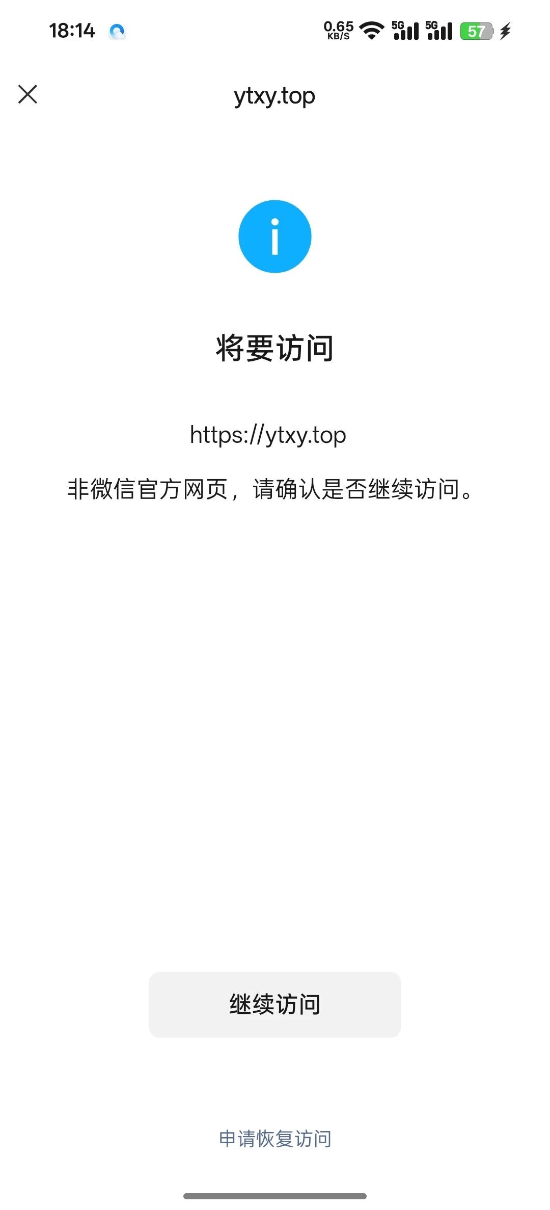本域名为新注册的域名刚完成了备案,只有一级解析使用记录,但被微信拦截,说无法确认该网页的安全性,请谨慎访问,请工作人员核实一下,解除限制,多谢。