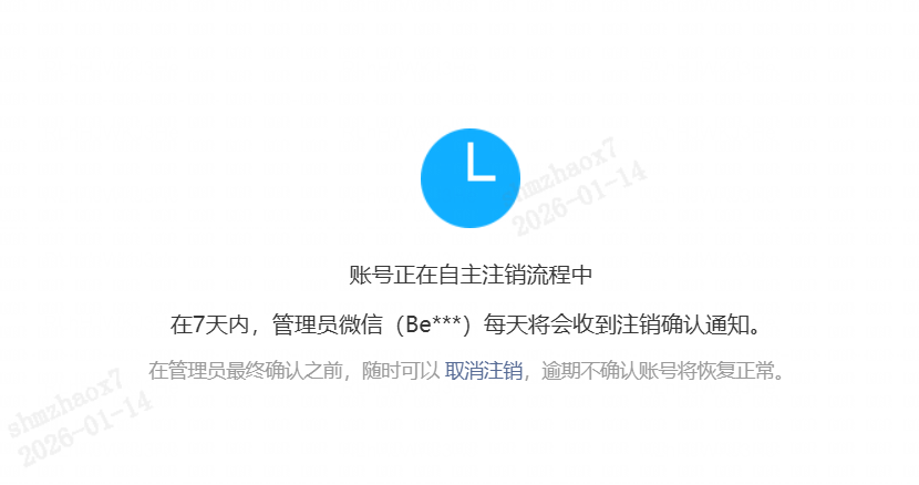 管理员关注下【公众平台安全助手】服务号,冻结期结束后会有确认注销通知,点击【确认】,成功注销。