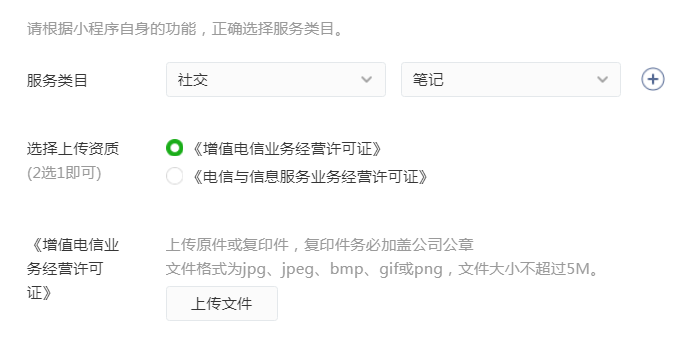 请问 社区-笔记 类目中需要的《电信增值业务许可证》有没有服务项目的限定?
