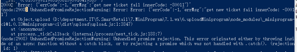使用 miniprogram-ci 模块来上传代码失败, 提示get new ticket fail iinnerCode: -8001, 是什么原因?