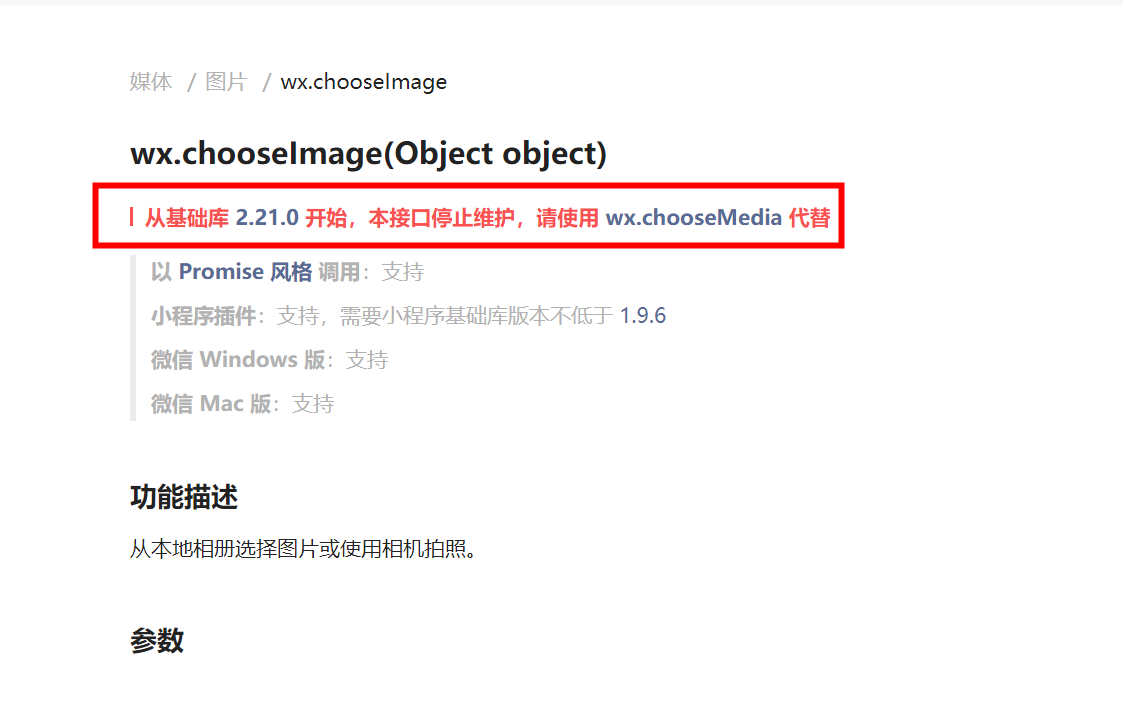 wx.chooseImage这个接口停止维护了,用这个代替:https://developers.weixin.qq.com/miniprogram/dev/api/media/video/wx.chooseMedia.html 。