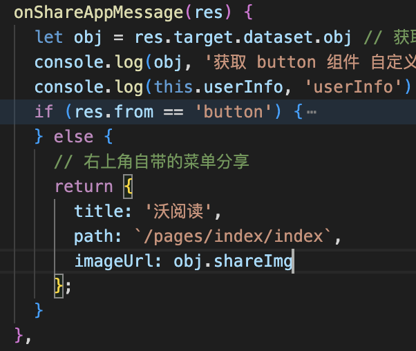 参考文档:https://developers.weixin.qq.com/miniprogram/dev/reference/api/Page.html#onShareAppMessage-Object-object