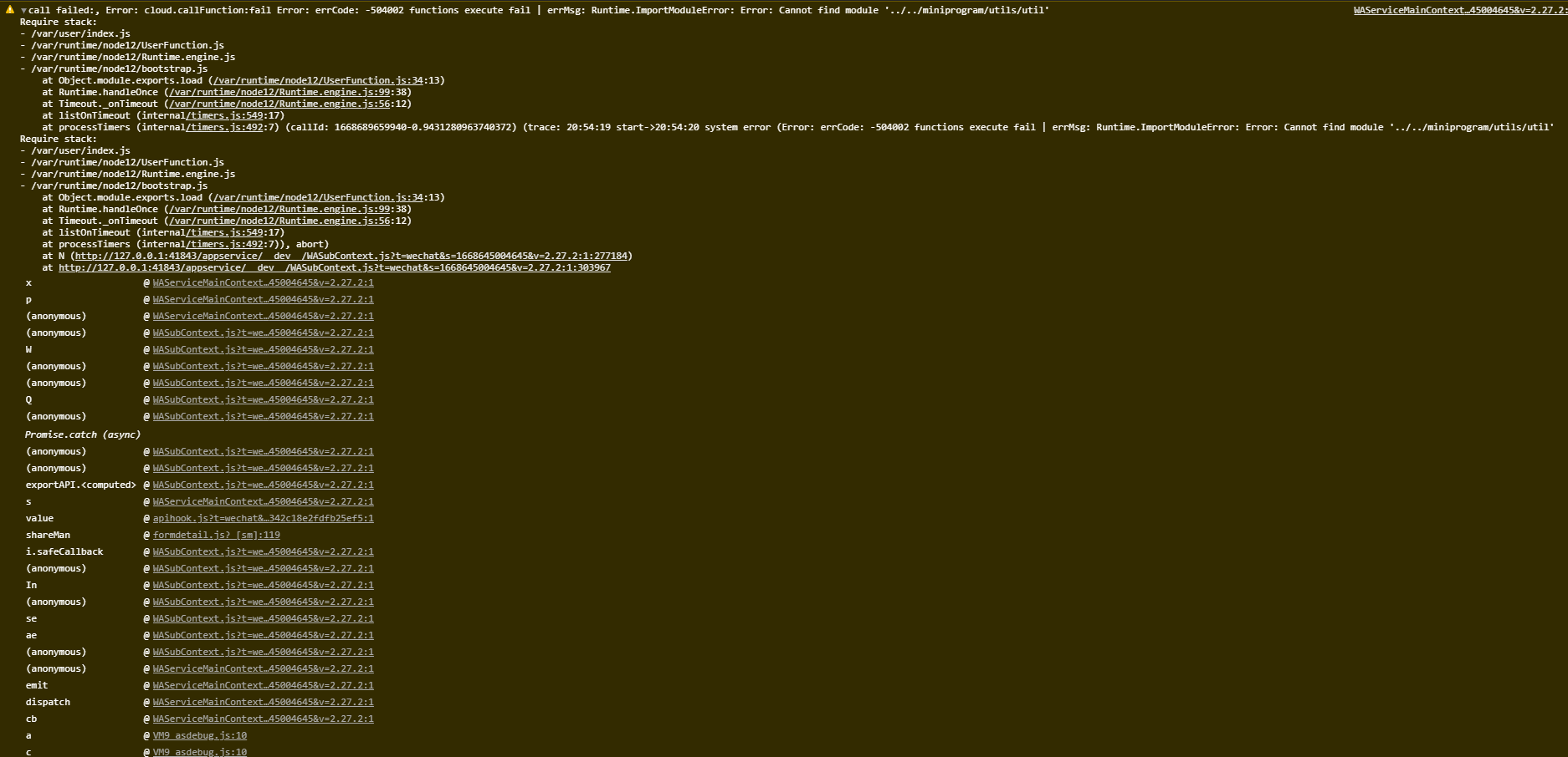 看你util是在小程序里,这样写不行,云函数和小程序代码开发是在一个文件夹内,但是部署不在一起,小程序在客户端,云函数是服务端