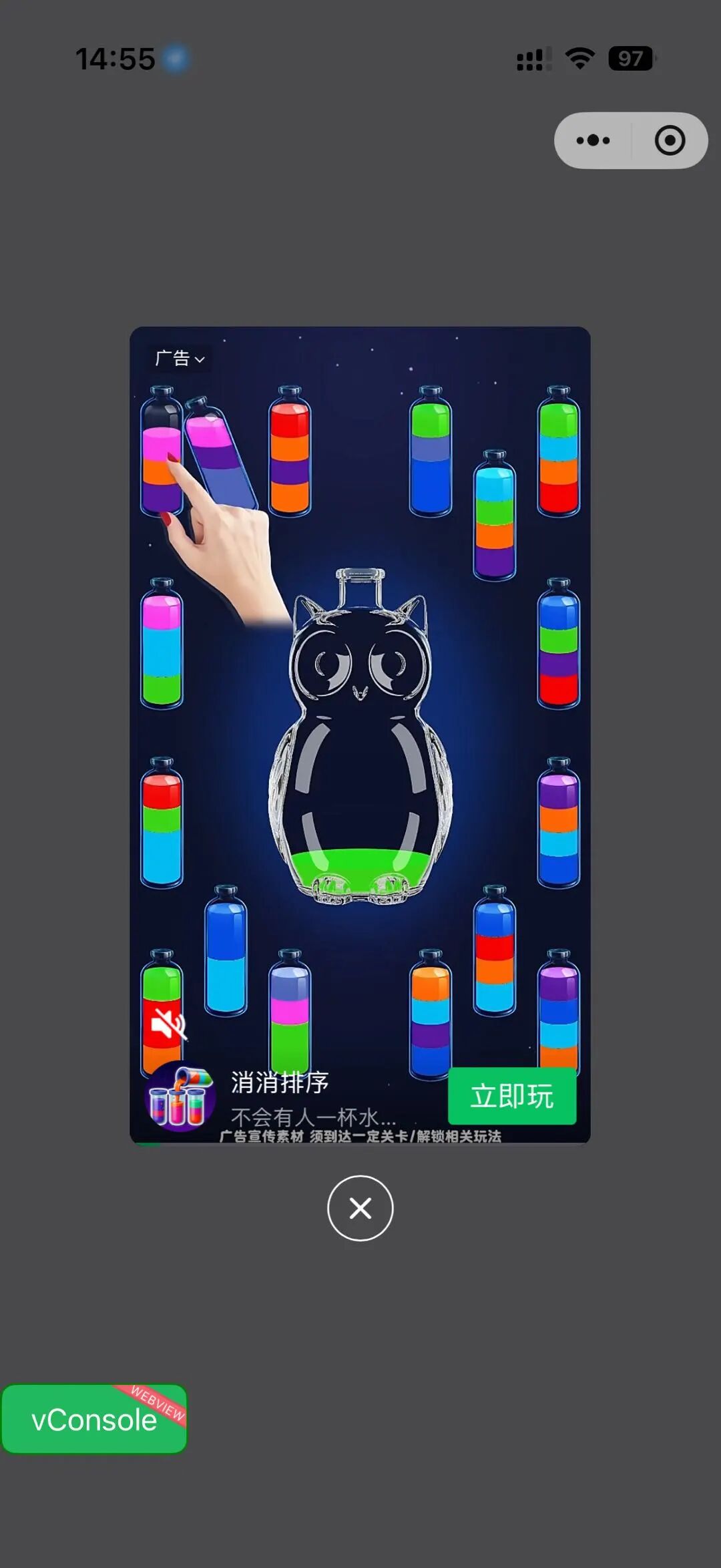 下面两个是我自定义的广告,使用的都是原生模板广告组件。一个是全屏模板,一个是竖版模板。