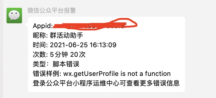 小程序上线后 收到小程序的报警提醒