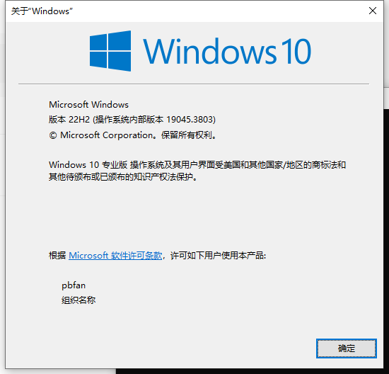 三、电脑系统是Win10专业版,版本号:Win10 22H2 19045.3803