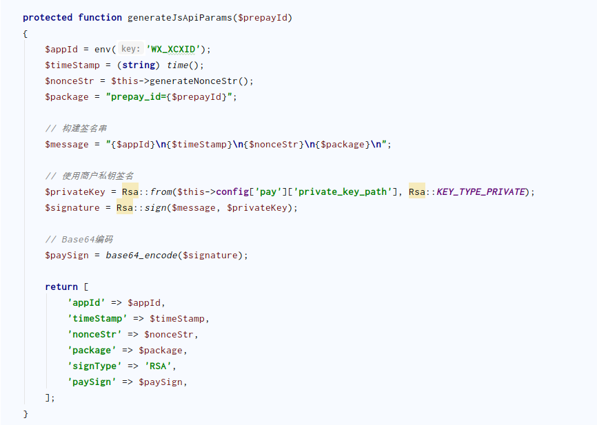 如果参数传递一致的话仍无法调起,检查下下单和调起的商户号对应apiclient_key.pem是否准确对应(如果是服务商模式调接口的话需要用服务商商户号的私钥apiclient_key.pem,不能用子商户的)
