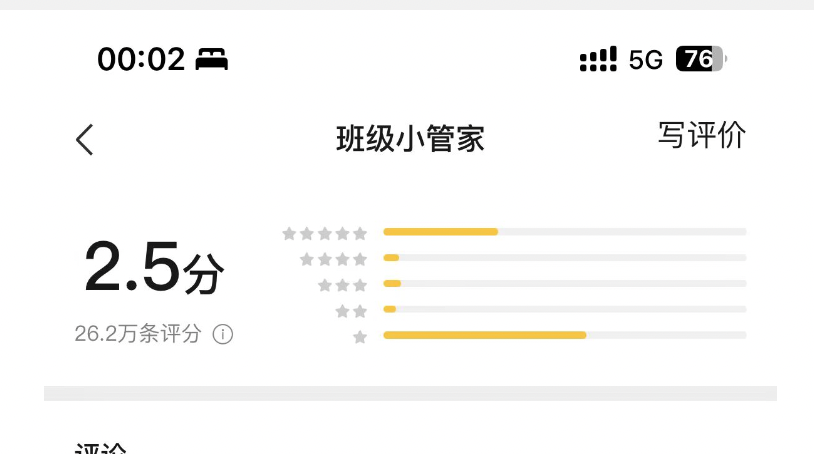 站在学生的角度,大多数人都很厌恶这种线上束缚的东西,看你的小程序一星比五星多,估摸者多半是学生评价的。