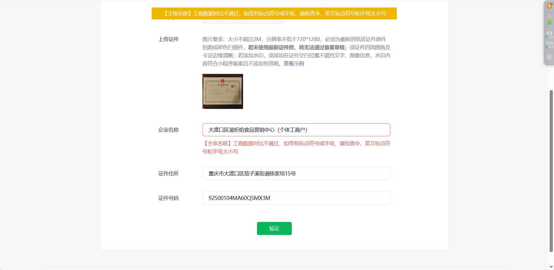 营业执照10月11号在工商局已经更新了名称,企查查企业信息公示系统等平台都更新过来了,小程序主体也做了名称修正重新上传了营业执照,审核也通过了,但是我今天去做备案验证还是提示工商数据对比不通过,麻烦帮忙加急处理一下,谢谢