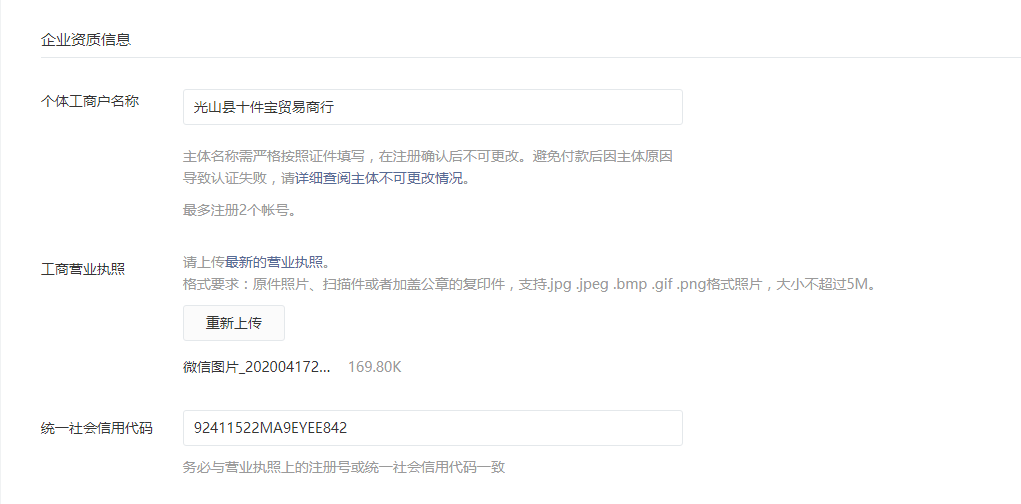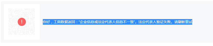 微信认证手机扫脸成功,但老是说你好,工商数据返回:“企业不存在或企业信息未更新”,法定代表人验证失败。请刷新重试,是怎么回事?我那些信息都对,为什么老是说验证不过?国家工商信息网站可以查到信息。哪位大神能不能帮忙解决一下? 原始ID:gh_f3b2640618b3