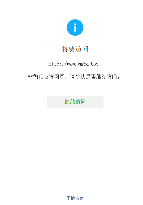 在微信打开网页www.ym8g.top提示非微信官方网页,请确认是否继续访问,已经备案了,并且也进行了申诉,但是还是提示非官方网页,这要怎么解决?