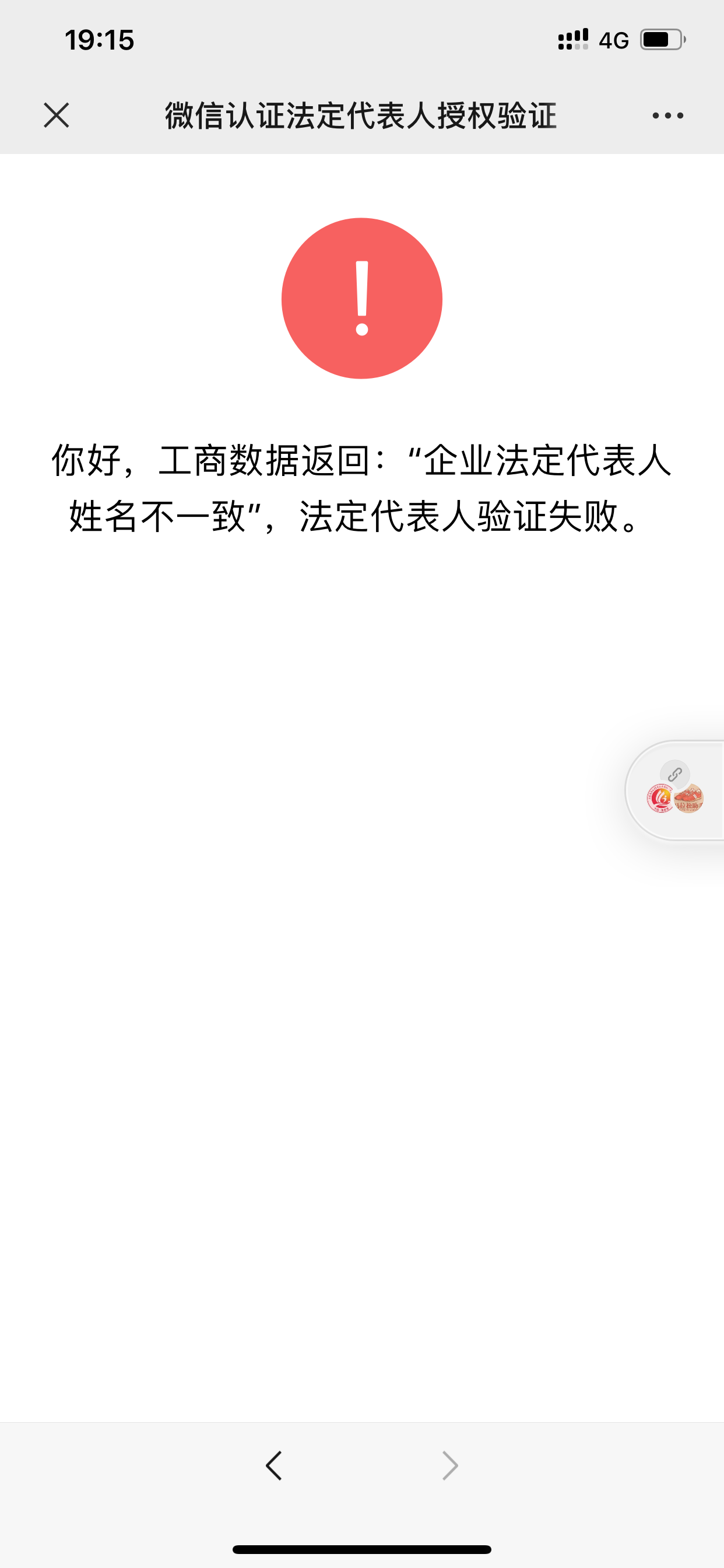 管理员您好,我是注册的个体工商营业执照,在申请认证的时候提示我”你好,工商数据返回:“企业法定代表人姓名不一致” “请问需要怎么操作呢,谢谢!