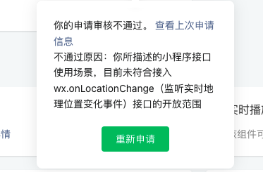 https://developers.weixin.qq.com/miniprogram/dev/framework/wx.onLocationChange申请一直不通过是什么原因;小程序ID为wxfa11b13a214fe3fa
