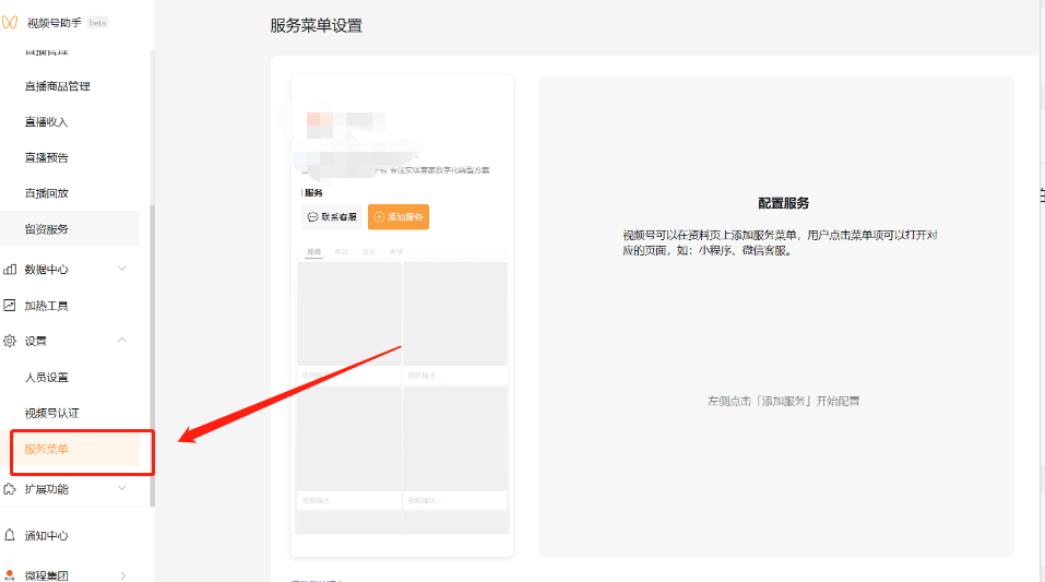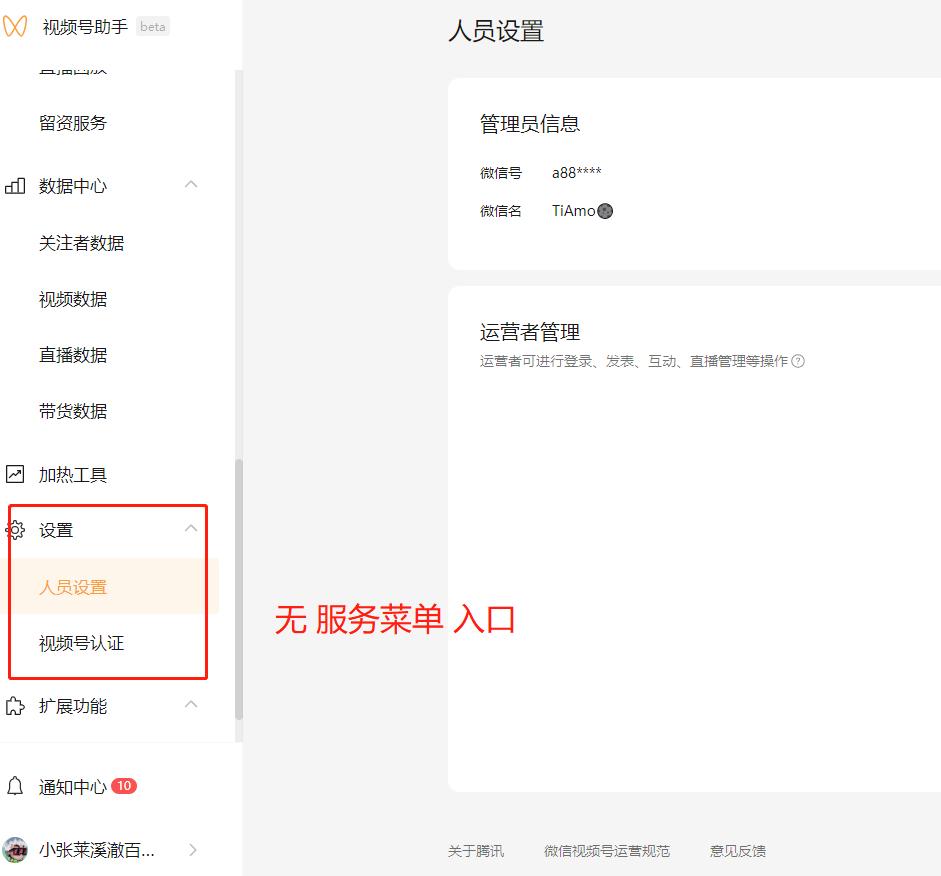 我们公司名下有两个经过企业认证的视频号,其中一个可以在视频号后台配置服务菜单关联同主体小程序,但是另外一个视频号就没有关联小程序的入口,如下图所示,这是什么原因呢,难道还和视频号粉丝、播放量有关吗?可以关联小程序的那个视频号粉丝量在7000+,另外一个粉丝量几百个。