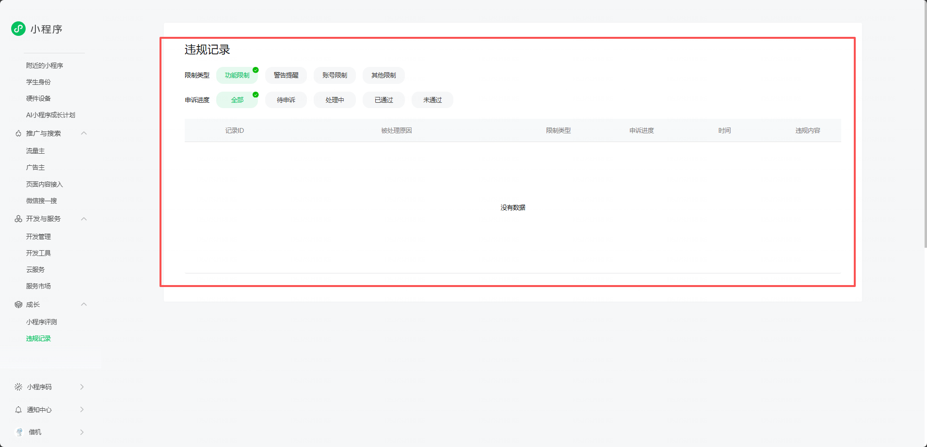 微信小程序跳转时提示“由于小程序违规,该功能暂时无法使用”,小程序违规记录里面又没内容,站内信又无具体原因及申诉途径,怎么解决?