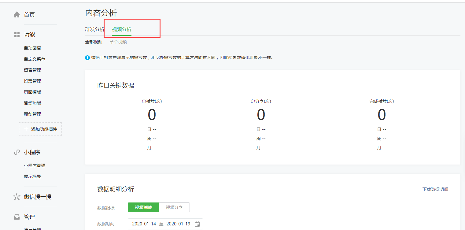 微信公众号后台只有视频分析,没有音频分析么?我的帖子里面有音频,想知道音频文件的播放量是什么样的,怎么看呢?