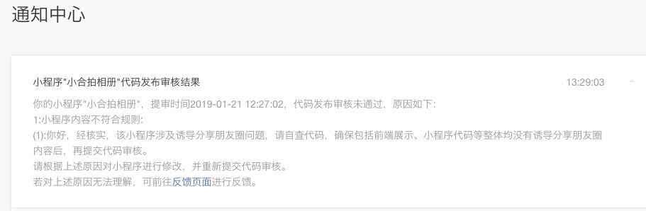 按照官方木易的指导,我们重新提交审核,又反馈说我们诱导分享朋友圈。我们已经通过审核并没有找到这个问题。