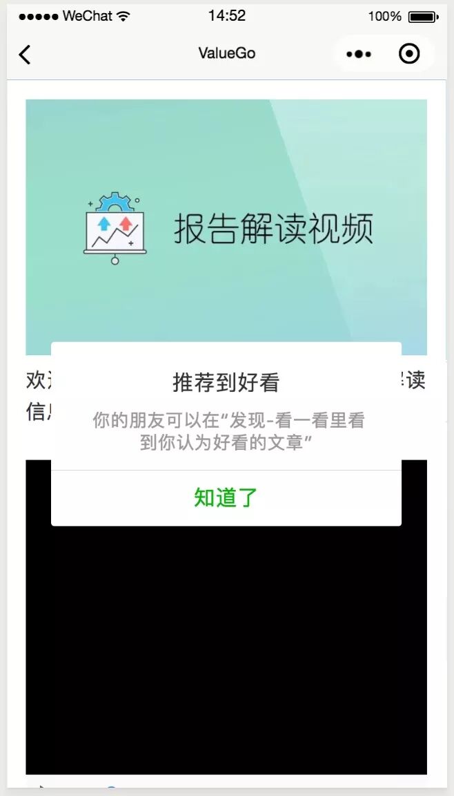 返回的文章中,会显示【推荐到好看】的弹窗,