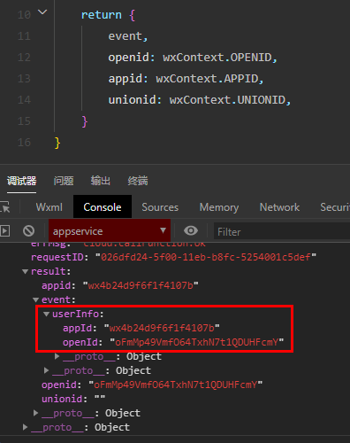 文中说 event 就是小程序端调用云函数时传入的参数,外加后端自动注入的小程序用户的 openid 和小程序的 appid。 我咋在调试的时候没见这两个字段?还有cloudbaseRoot 这个设置了,确定有用吗?感觉这篇教程很不准确啊