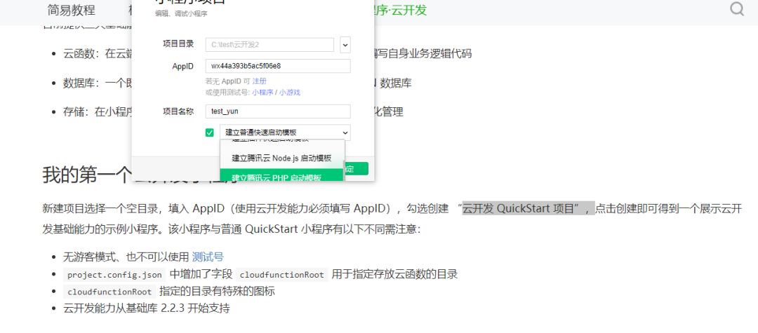 要怎么选择“云开发QuickStart项目”?(꒦_꒦) 我这里面只有腾讯云node.js的进去左上角并没有云开发的按钮(꒦_꒦)