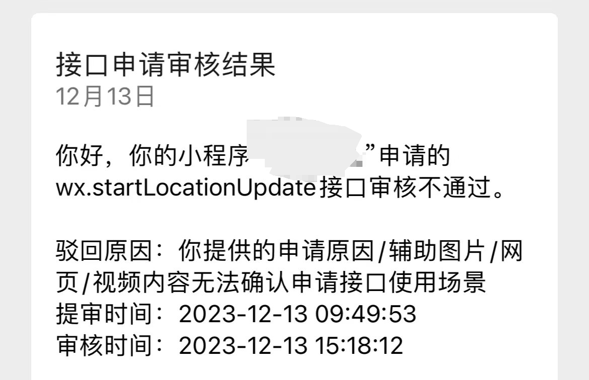 wx.onLocationChange接口12.13显示“审核不通过”,没有重复提交,现在又显示“审核中”,一直在“审核不通过”和“审核中”反复横跳。