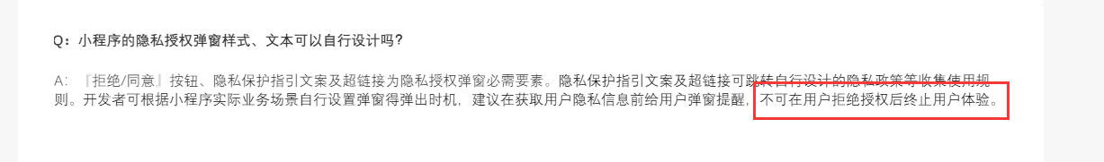 最新的隐私授权弹窗,点击不同意,可以直接终断用户体验吗???