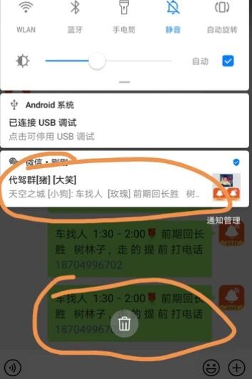 第二张图:群里发的信息很多,结果到通知栏就剩下一个电话了,中间全部都删除了!