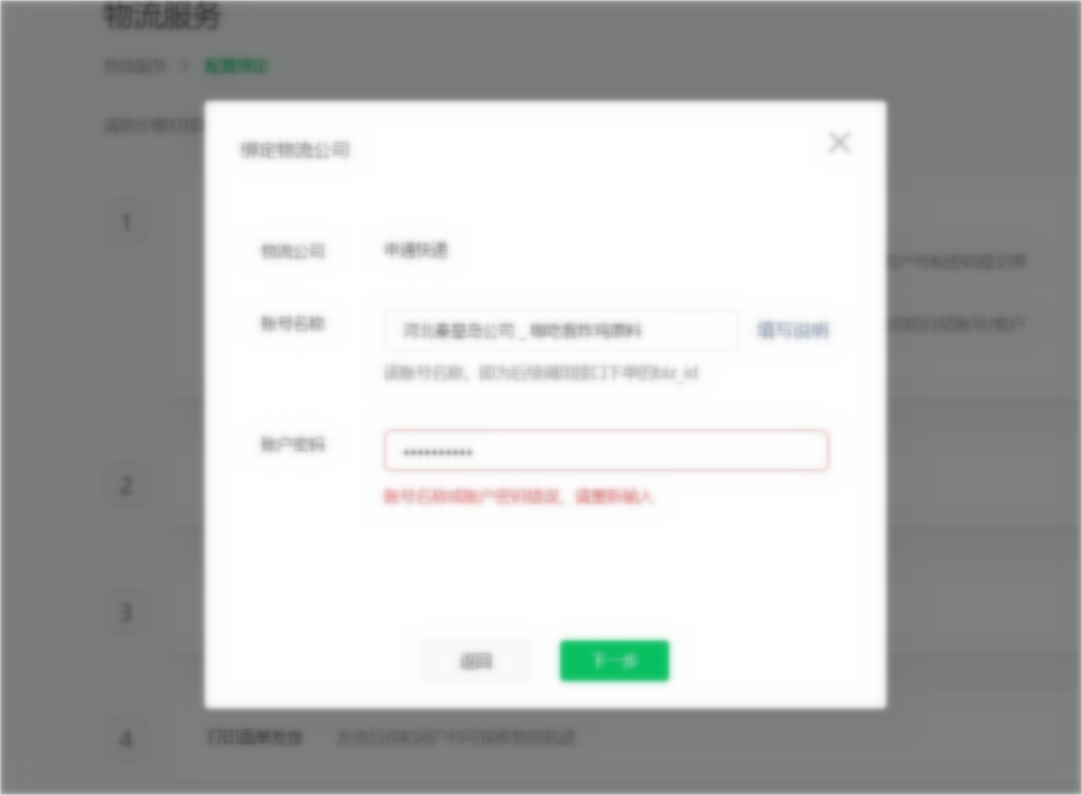 物流服务-绑定快递到底如何绑定,我绑定的是申通快递一直提示我账号密码错误,我已经反复向网点申请3个账号密码了 全部都不可以,到底什么地方出了问题