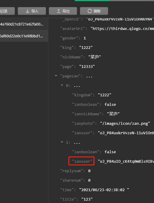 当数组pagezan下的 zanuser=openid时候,返回对应的数组内容(如:pagezan[1]内的所有内容)