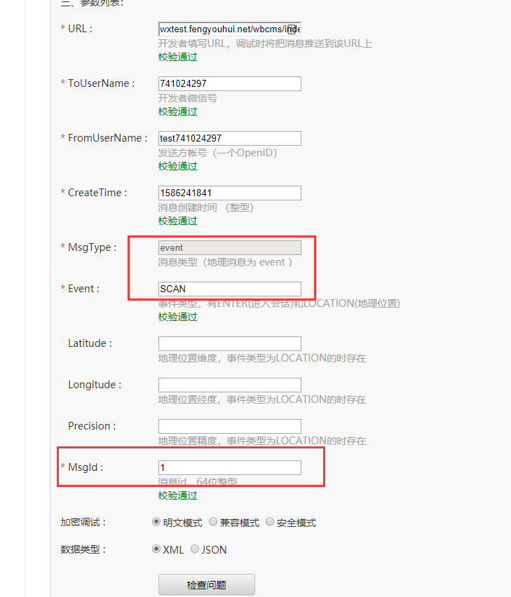 当MsgType 为event 时 文档上并没有MsgId 这个字段,是文档有问题 还是测试工具有问题?