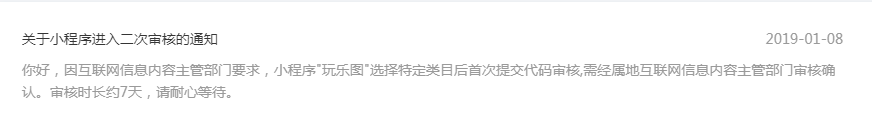 在1月8日重新提交审核以后,系统通知二次审核需要七天时间,已经煎熬的度过7天了,之前辛苦积累的流量已经付诸东流。