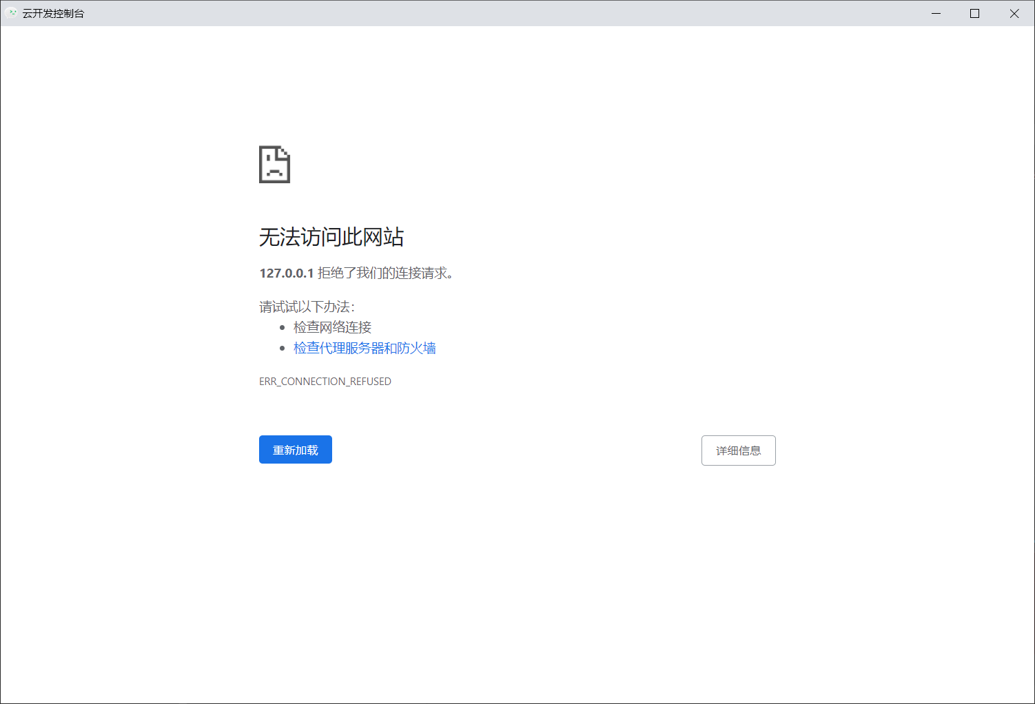 云开发超限额后,微信提示进入 开发者工具-云开发控制台 操作,但控制台拒绝连接。