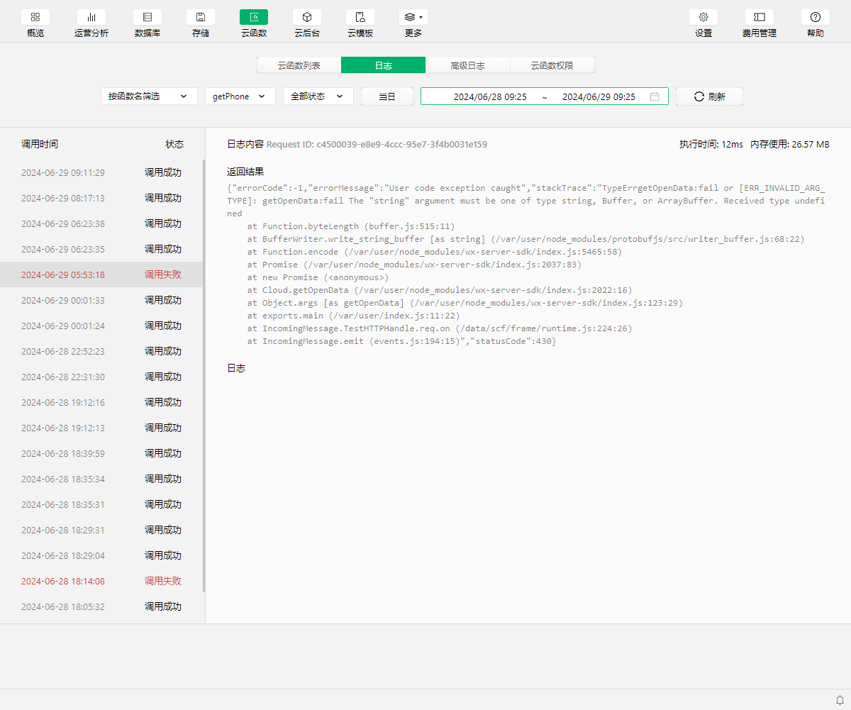 最近几天屡次出现云函数报错,什么原因?
