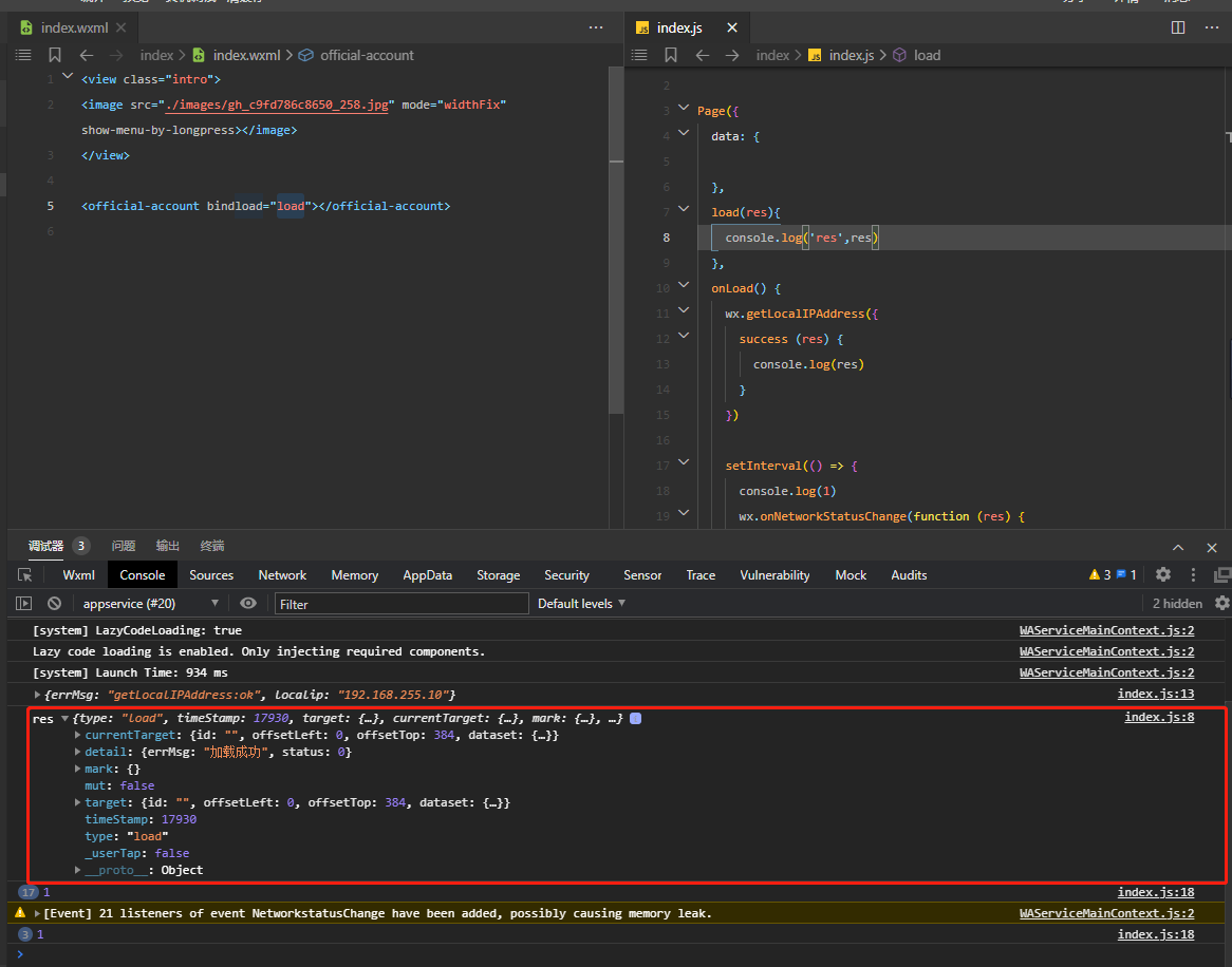 official-account 在成功加载后为什么不回调 bindload,但是在加载失败时是可以回调 binderror 方法的。